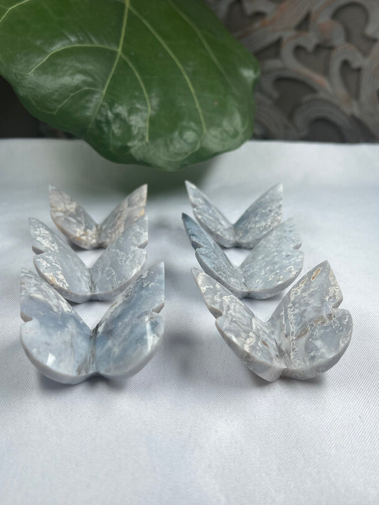 6 pcs Grey Blue Plume Agate 3D Butterfly