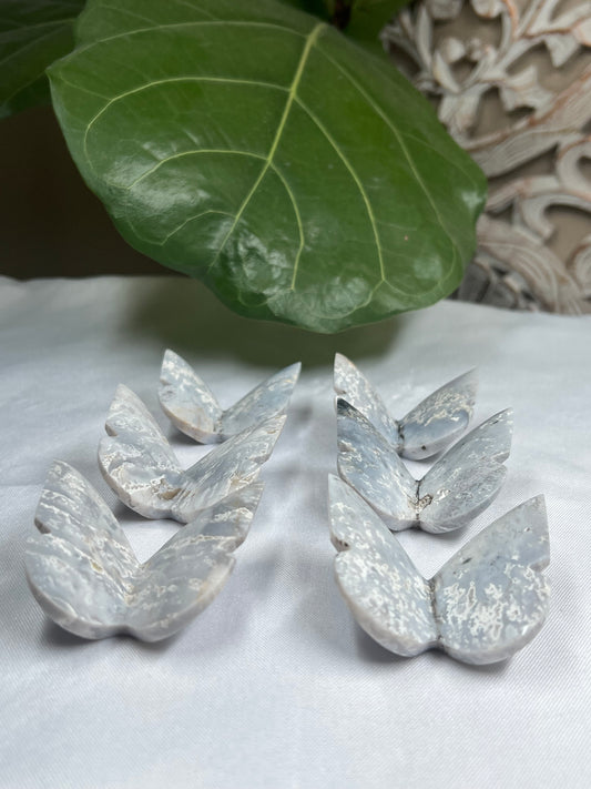 6pcs Grey Blue Plume Agate 3D butterfly