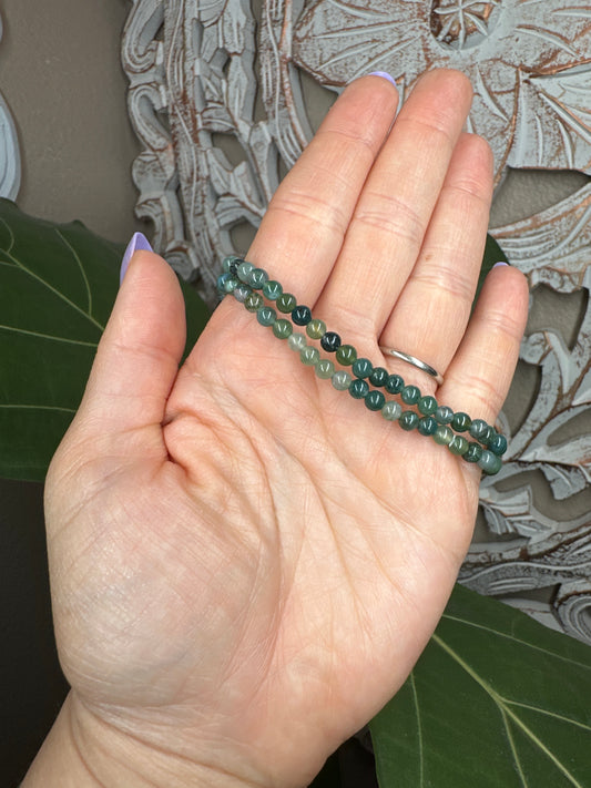 Moss Agate Beaded Bracelet (4mm)