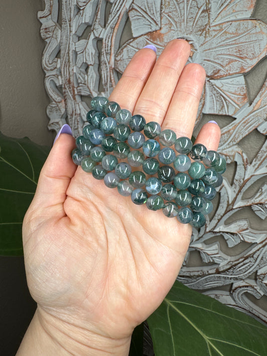 Moss Agate Beaded Bracelet (8mm)