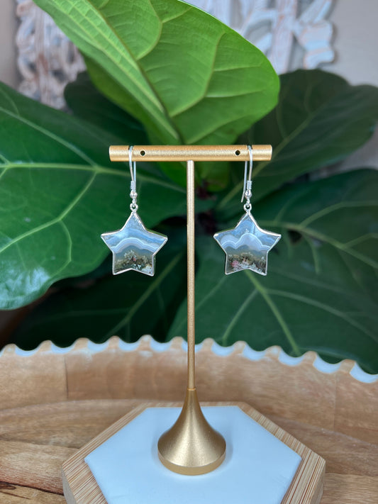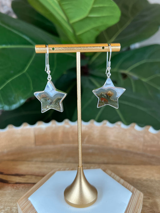 Scenic Moss Agate Star Earrings