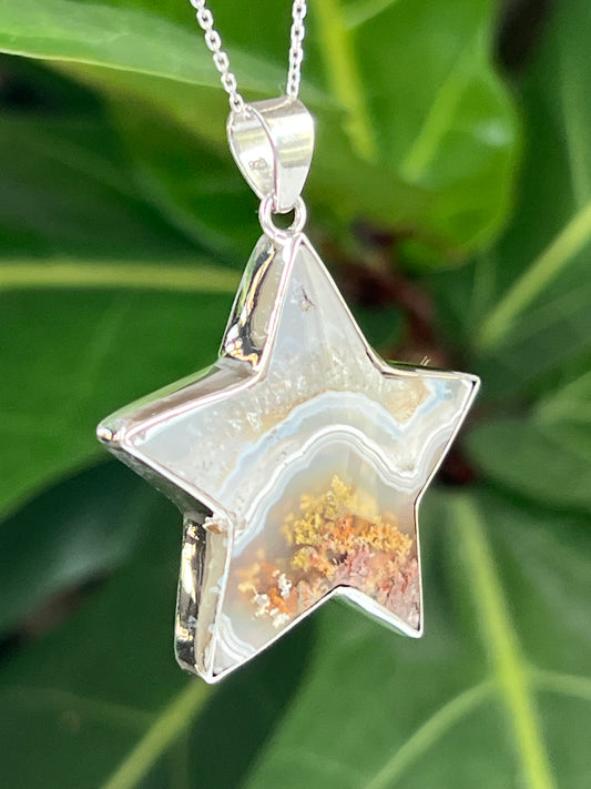 Scenic Moss Agate Star Pendant