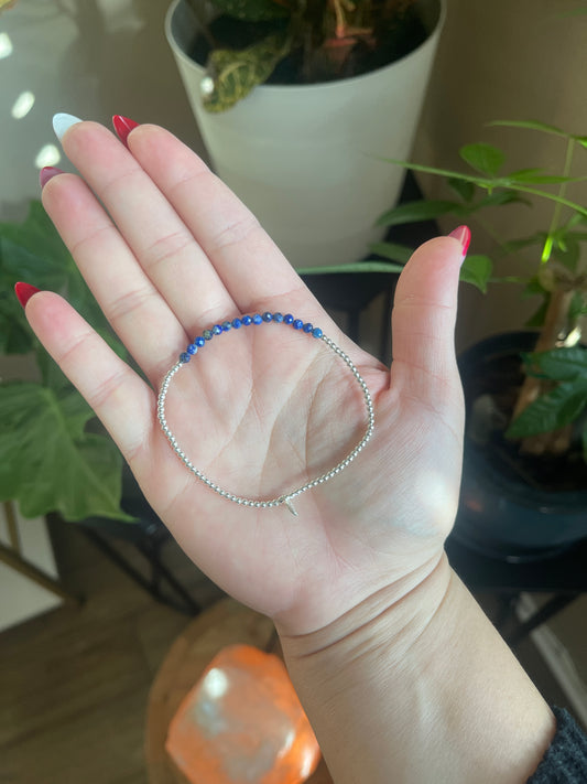 Stone & Silver Beaded Stretch Bracelet