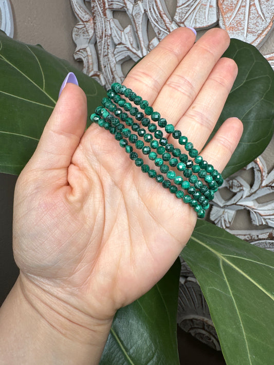 Faceted Malachite Beaded Bracelet (4mm)