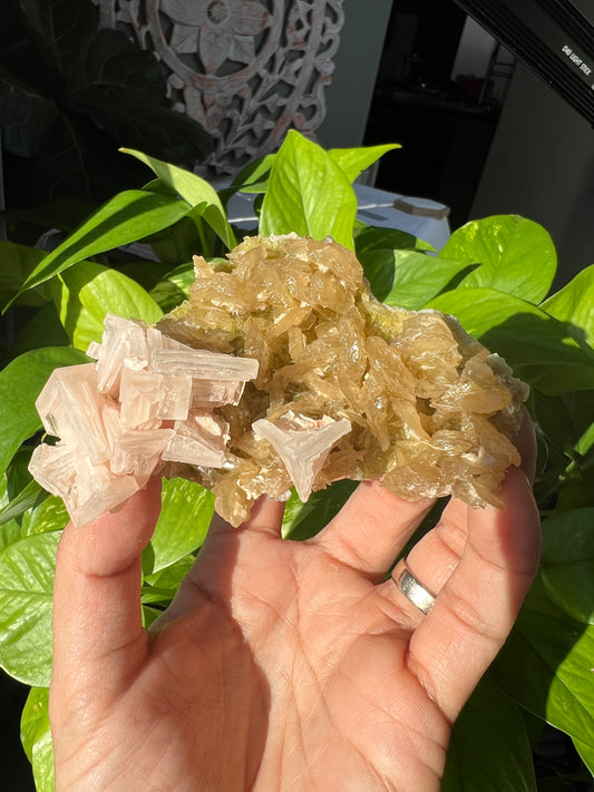 Green Apophyllite with Peach Pink Hue Stilbite Speciment