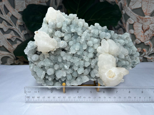Apophyllite on Calcites on Blue Stalactite Chalcedony Specimen