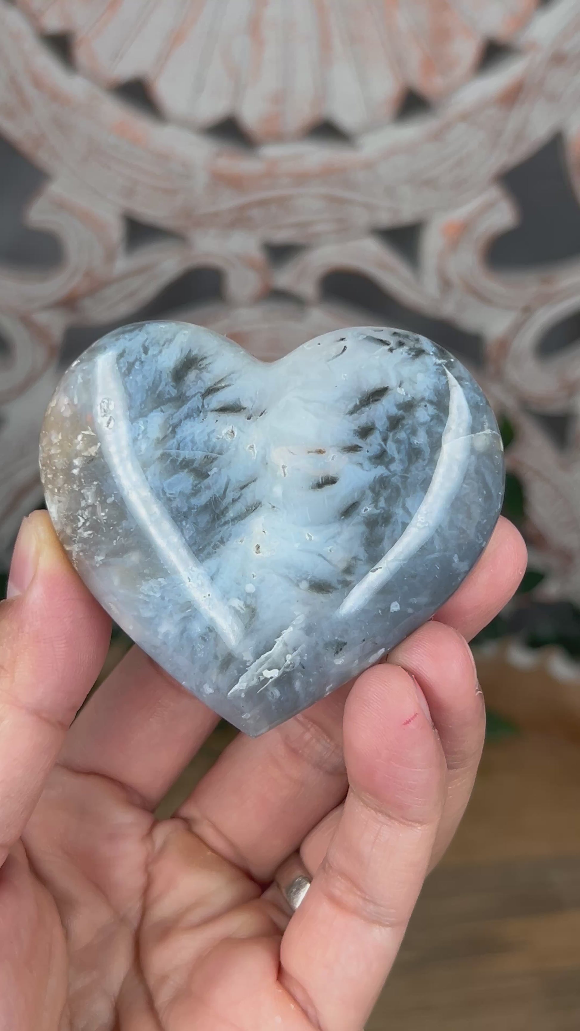 Rainbow Plume Agate Heart