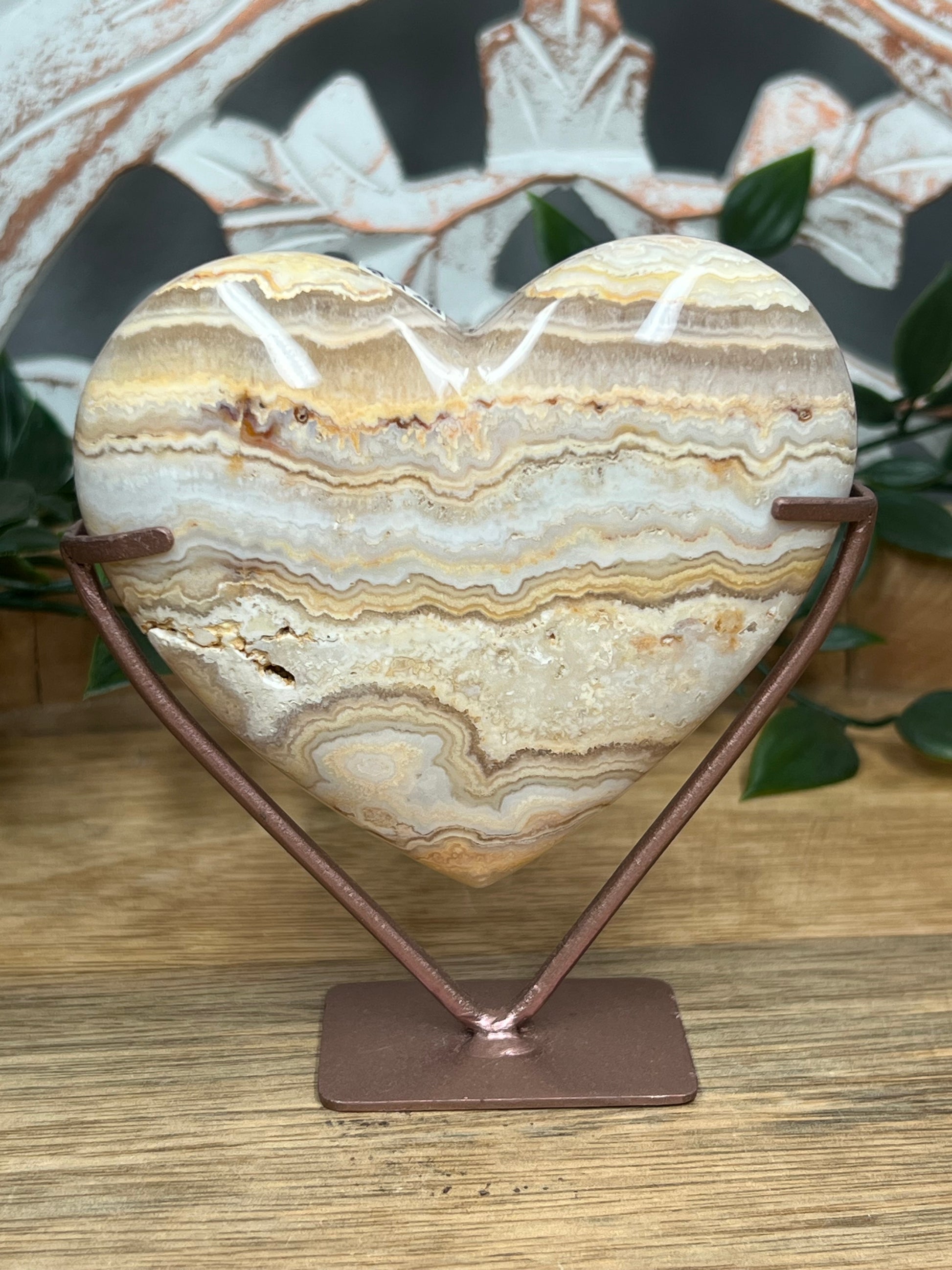 Yellow Crazy Lace Agate Heart